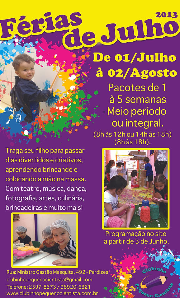 O Clubinho é uma escola bem diferenciada aqui em São Paulo, já saiu em várias revistas, jornais, etc. Percebi uma grande diferença das escolas tradicionais. Os professores/educadores dão feedbacks diários da criança, o que ela fez de correto e errado...AMEI!!!